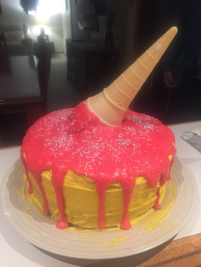 An excited birthday girl who enjoyed three birthday cakes (including my attempt)…